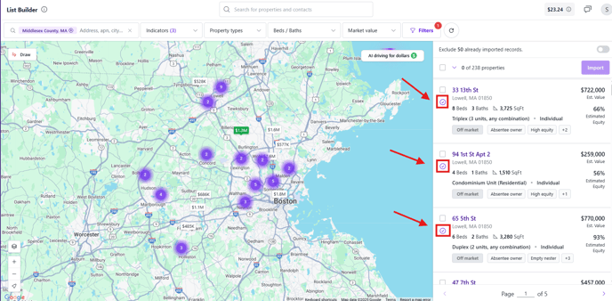 This visual cue helps you quickly identify existing properties and keep your database clean and accurate. If you notice properties without a check mark, those are new records that can safely be added to your list.
