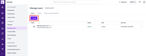 From the Manage users tab, click on User on the upper left side of the page to add a user on your account.