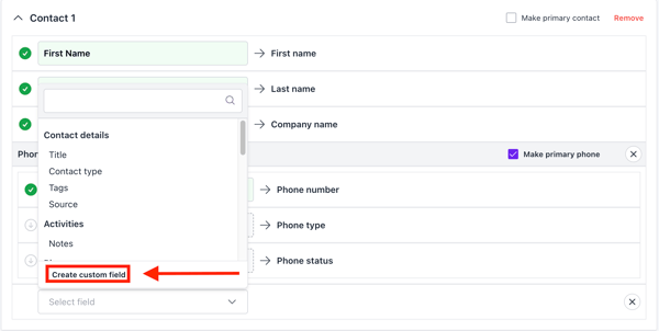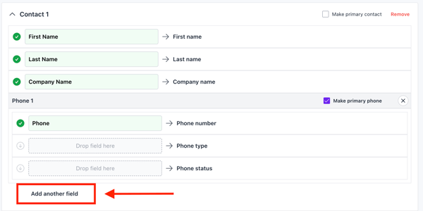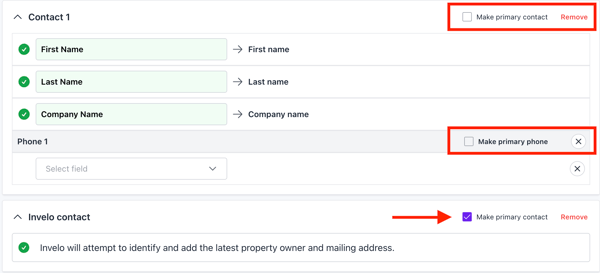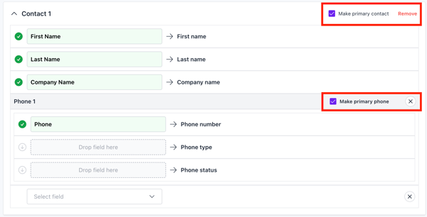 ☑️ Checked: The imported data will become the primary contact or contact method.