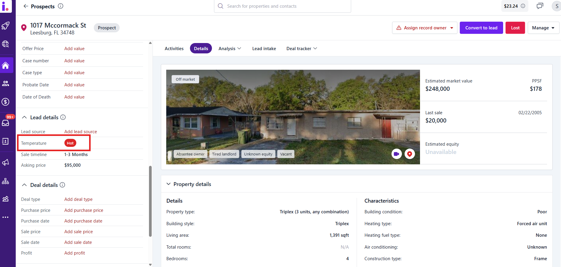 | Lead Temperature | Motivation based on owner interaction | Determined by your conversations and engagement |