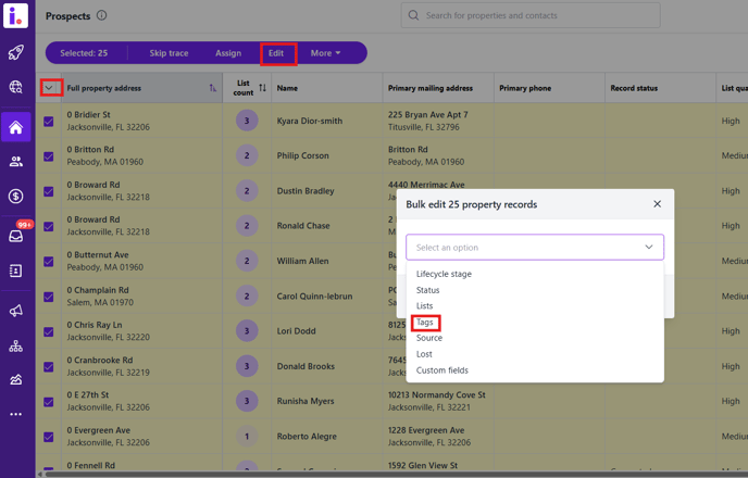 You can also apply tags in bulk — perfect for large data sets or teams managing multiple campaigns. Simply select multiple records, click “Edit” → Tags,” and apply a shared tag in one go.