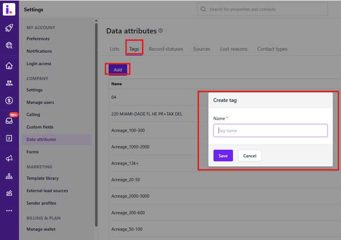 They act like digital labels, allowing you to quickly identify and organize lists by campaign, location, or property type, making it easier to filter, search, and manage your data efficiently.