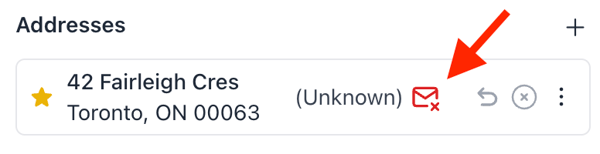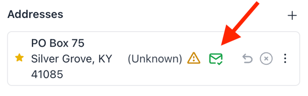 You can quickly identify a contact’s mailing address status by checking the envelope icon next to the address inside a property or contact record.