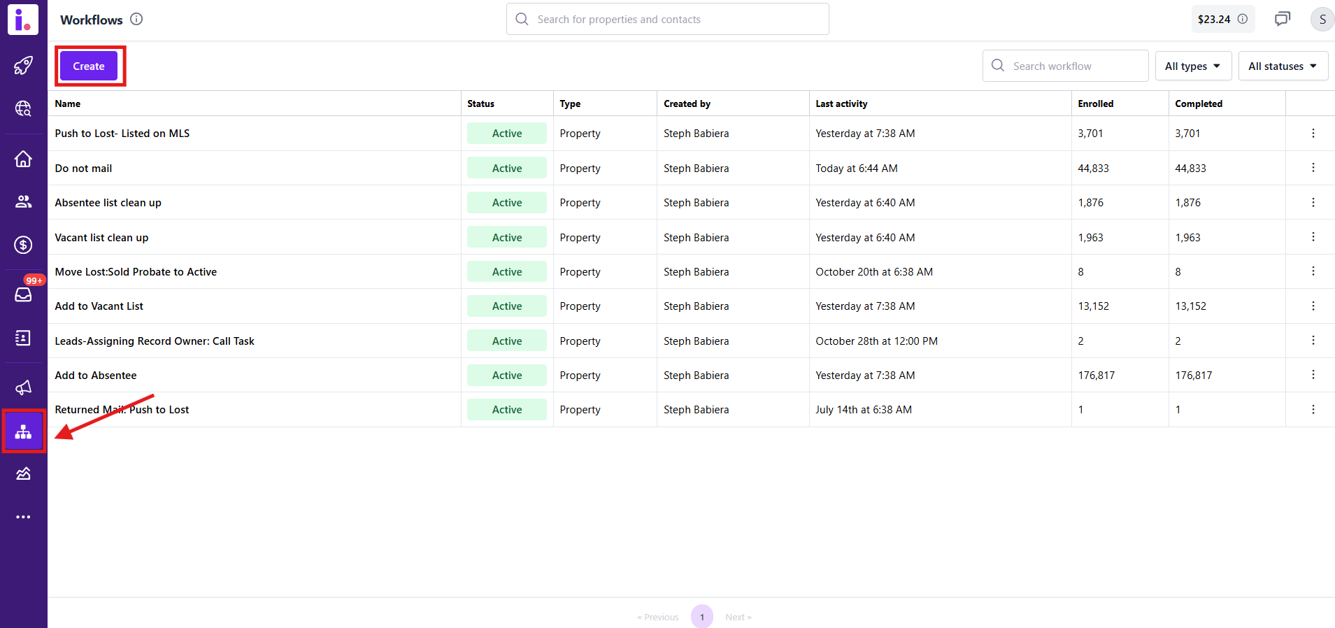 Navigate to Workflows on the left-hand side of your account